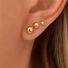 Conjunto de 3 pares de brincos em ouro 18K (mini) para primeiro, segundo e terceiro furo: bolinha, estrela e coração. Cada peça tem acabamento polido e tarraxas confortáveis. Versátil para montar combinações do seu jeito. Conteúdo: 3 pares em ouro 18K.