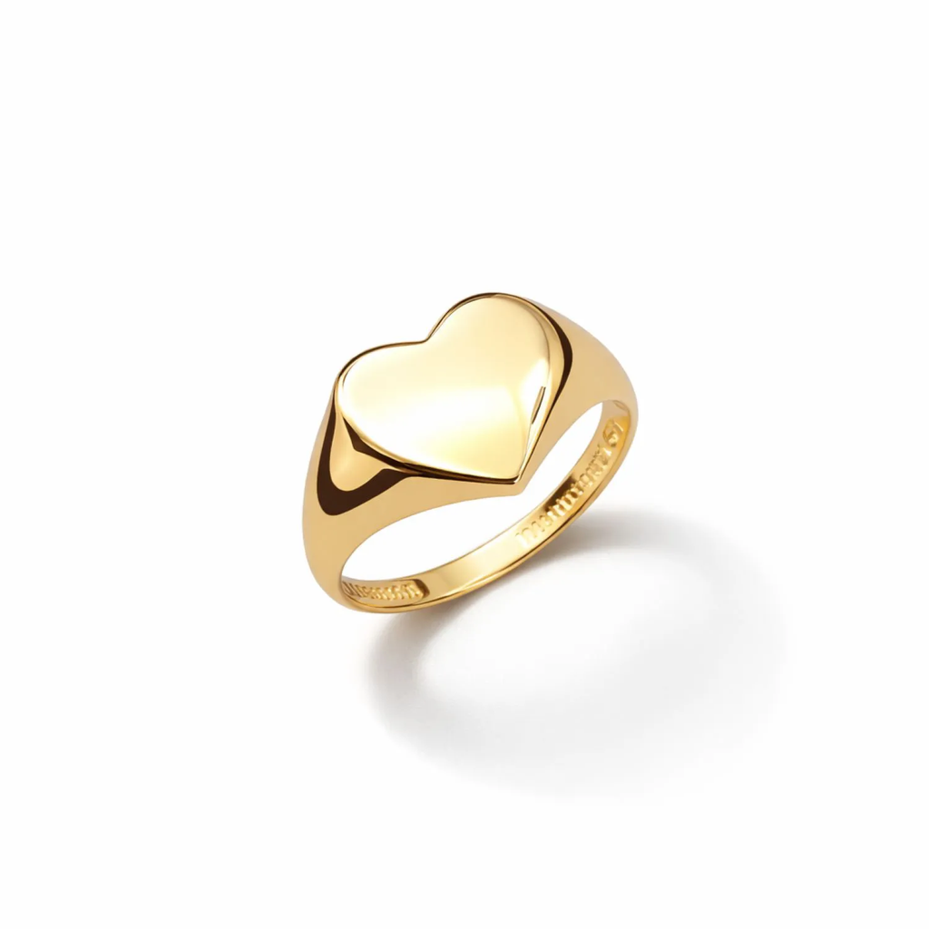 Anel em ouro 18K com topo em formato de coração lapidado em relevo e laterais com microtextura que lembra “selo” de joia antiga. O coração recebe polimento extra para parecer uma gota de luz. Uma peça romântica, mas com personalidade, perfeita para presente marcante. Conteúdo: 1 anel em ouro 18K.